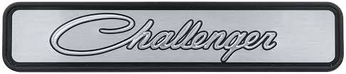 OER® reproduction of the padded dash emblem assembly and replacement dash emblem inserts designed for 1971-74 Dodge Challenger models. Includes correct silver "Challenger" insert on a brushed silver background pre-installed in a black plastic inje ction molded bezel. Mounts to the passenger side of the dash pad. Includes two push-nuts required for installation.