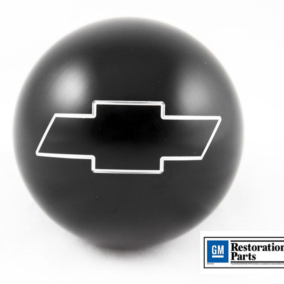 Camaro/Firebird Billet Aluminum Chevy Bowtie Manual Shift Knob NEW 2.25". This shift knob is CNC milled from a solid chunk of aluminum with a M16x1.5 thread pitch and nylon stop then anodized and milled with this custom logo for an awesome look and a great feel in your hand. It is 2.25" in diameter and also come with shims to align the knob so it is straight when installed.